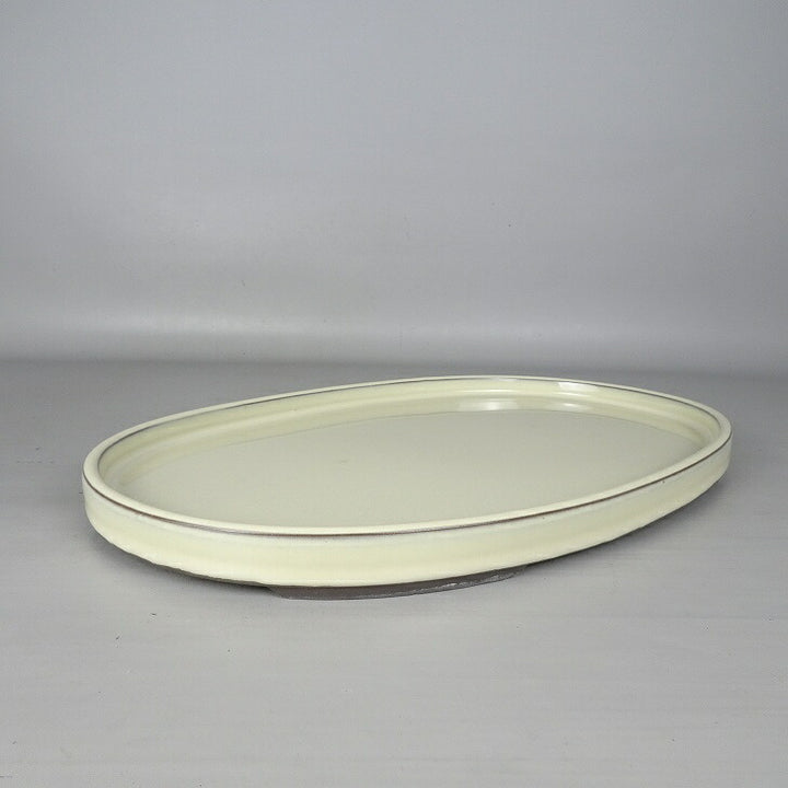 水盤 春松 中型 長辺 約 40.4cm 楕円 鉢 水石 盆栽 花器 釉薬 現品 中古 品名水盤 (春松)...