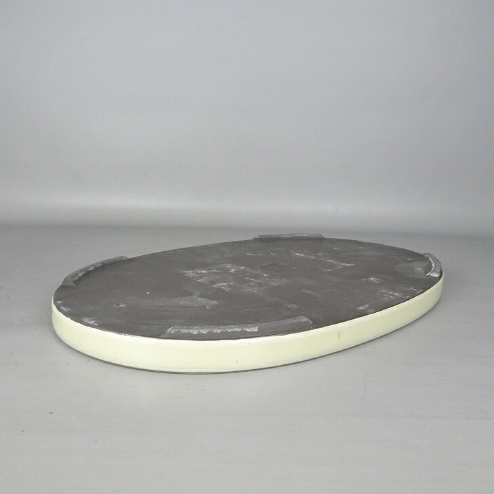 中古 水盤 春松 中型 長辺 約 40.4cm 楕円 鉢 水石 盆栽 花器 釉薬 中古 v1198435744
