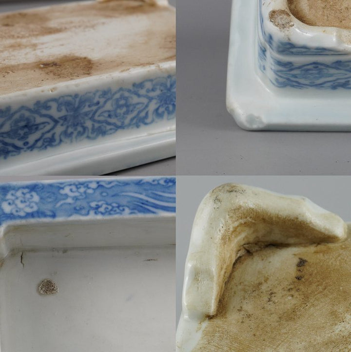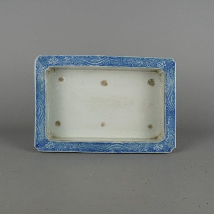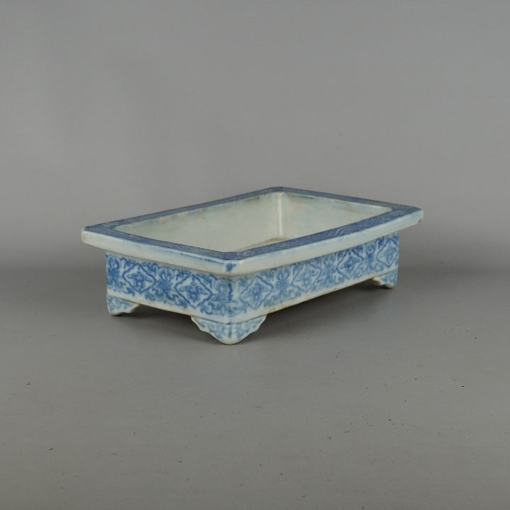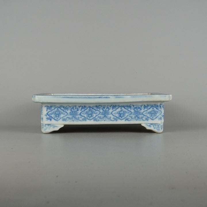 水盤 落款なし 中型 長辺 約 26cm 長方 鉢 水石 盆栽 花器 南京 花 植物 模様 観賞用 現品 中古 商品名水盤 (南京)...