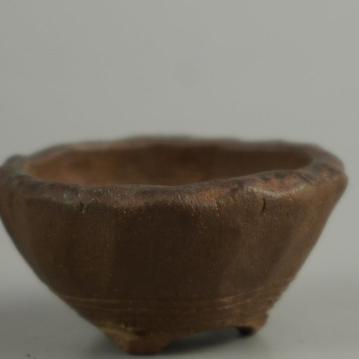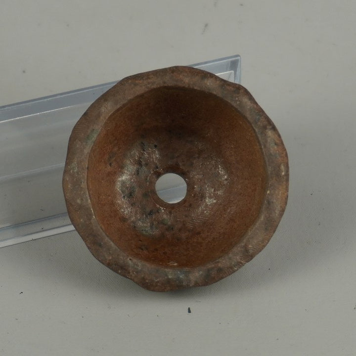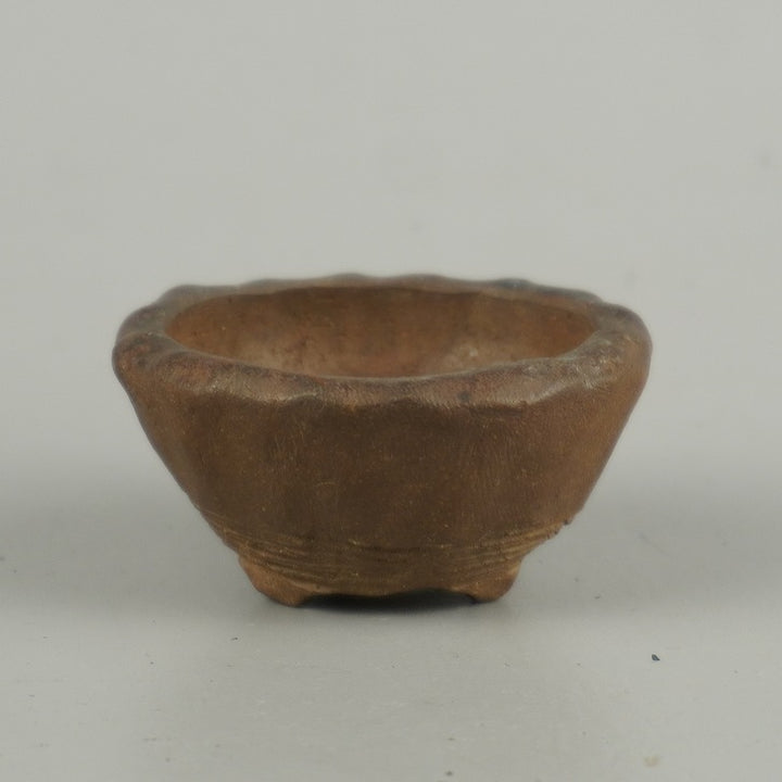 中古 盆栽鉢 万古 春山 豆鉢 長辺 約 5cm 丸鉢 泥物 ミニ鉢 鑑賞 観賞用 中古鉢 s1203437378
