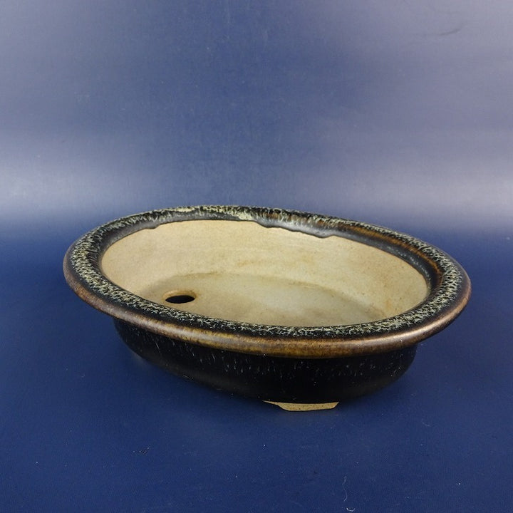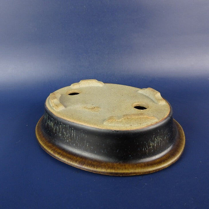 中古 盆栽鉢 小石原焼 小型 長辺 約 15.4cm 楕円鉢 外縁 ナマコ釉 釉薬 中古鉢 f1198410382