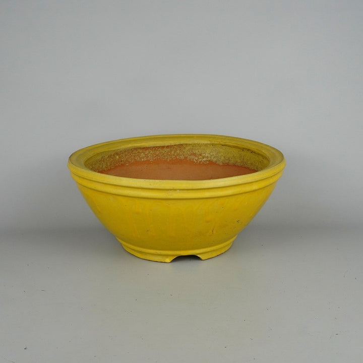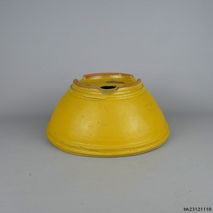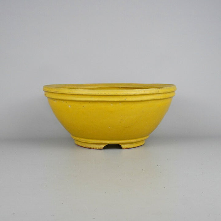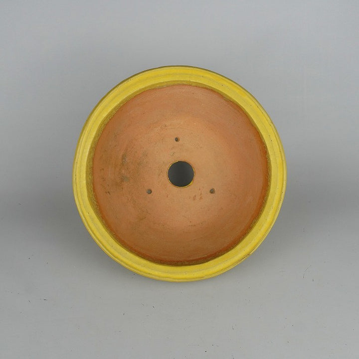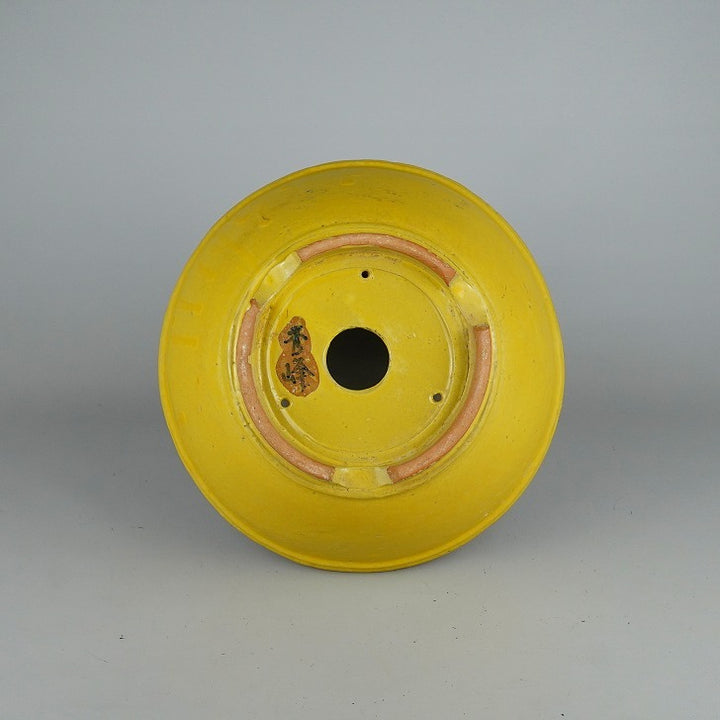 中古 盆栽鉢 常滑 秀峰 中型 長辺 約25cm 丸鉢 上下帯 黄釉 釉薬 中古鉢 s1198417208