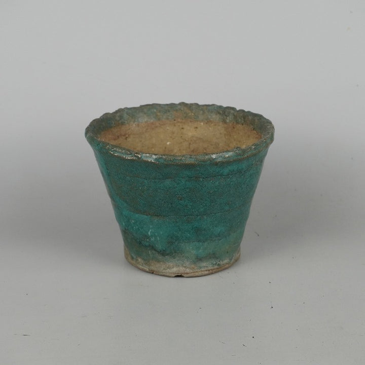 中古 盆栽鉢 常滑 秀峰 小型 長辺 約12.8cm 丸鉢 釉薬 中古鉢 r1198411402
