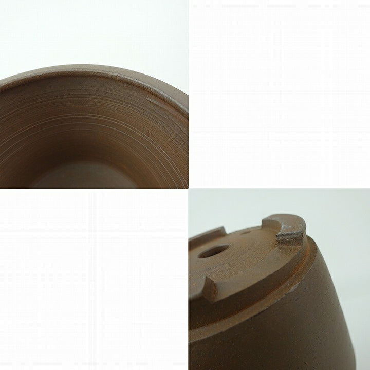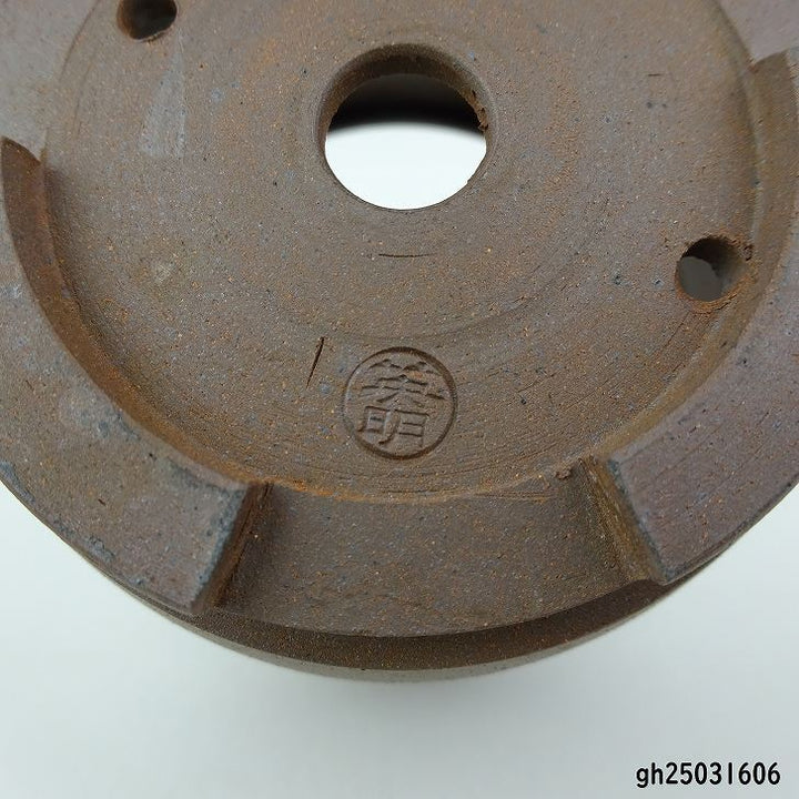 【中古】盆栽鉢 常滑 英明 小鉢 長辺 約 8cm 丸鉢 泥物 現品 中古鉢 本名 清水英明 父・燿山は盆器職人で常滑でも有数の釉薬大家。 製品は約50cmくらいまでの小、中品釉物主で基本的に丸鉢はロクロ、それ以外の盆器は押型で作られる。押型は厚めに型取りして自ら削りなおす。猫足、絵付け、泥色鉢など多彩で一品制作に近いものと量産品がある。...