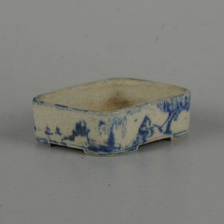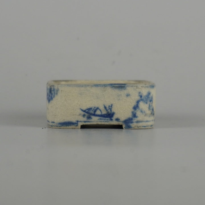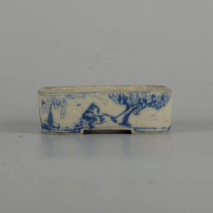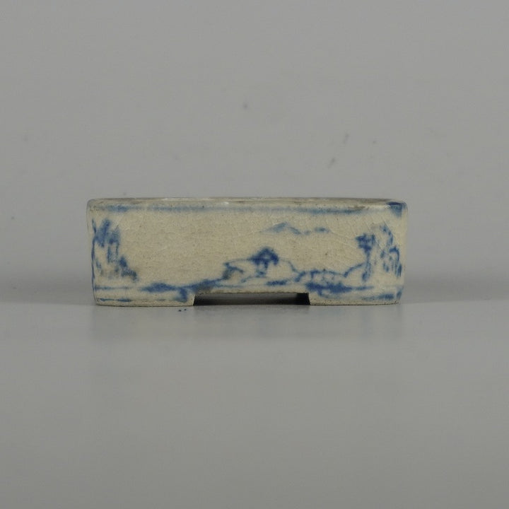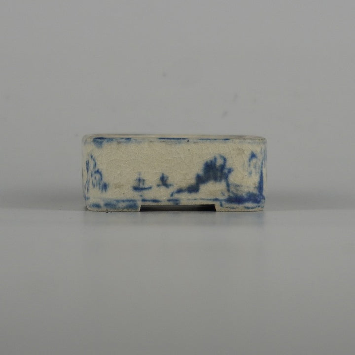 盆栽鉢 無庵 小鉢 長辺 約 6.3cm 長方鉢 山水図 観賞用 現品 中古鉢 品名無庵...