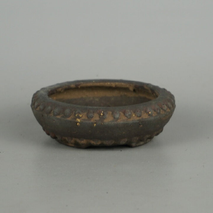 中古 盆栽鉢 秀峰 小鉢 長辺 約 8.5cm 丸鉢 鋲打 泥物 中古鉢 r1198406931