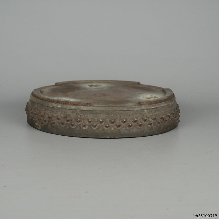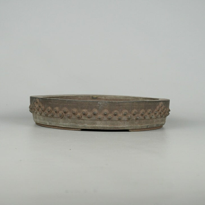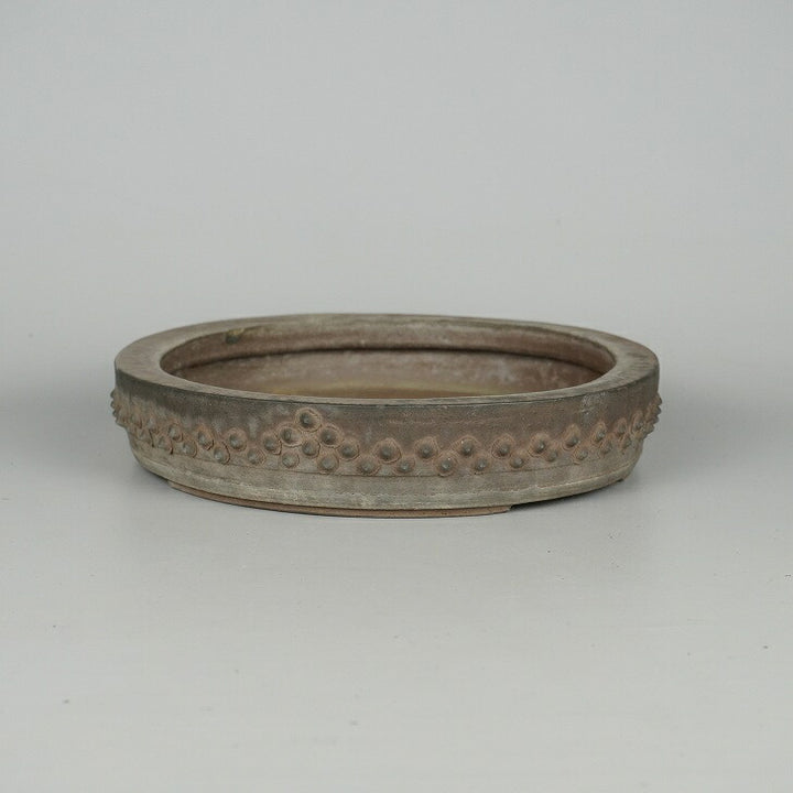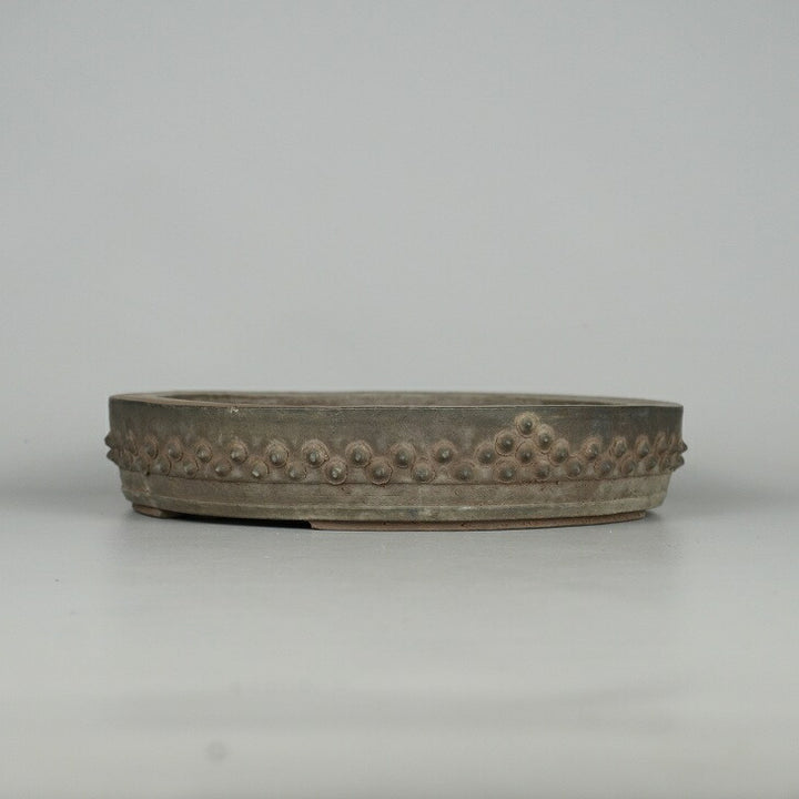 盆栽鉢 舟山 中型 長辺 約21.7cm 丸鉢 鋲打 泥物 現品 中古鉢 品 名舟山 サイズ高さ 約4.3センチ...