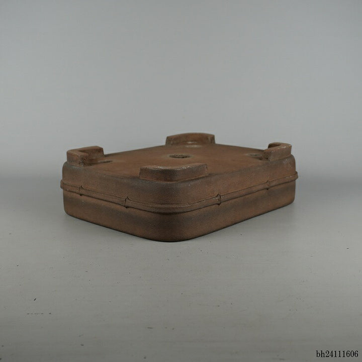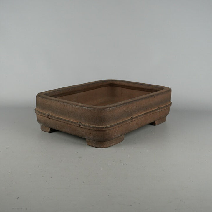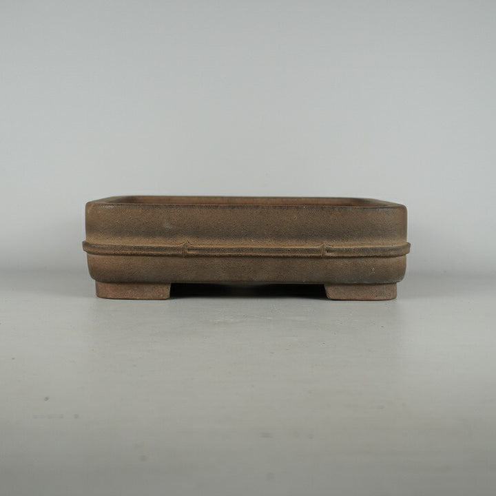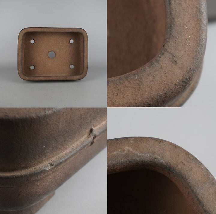 盆栽鉢 舟山 中型 長辺 約31.3cm 長方鉢 撫角 竹節 中帯 泥物 現品 中古鉢 品名舟山...