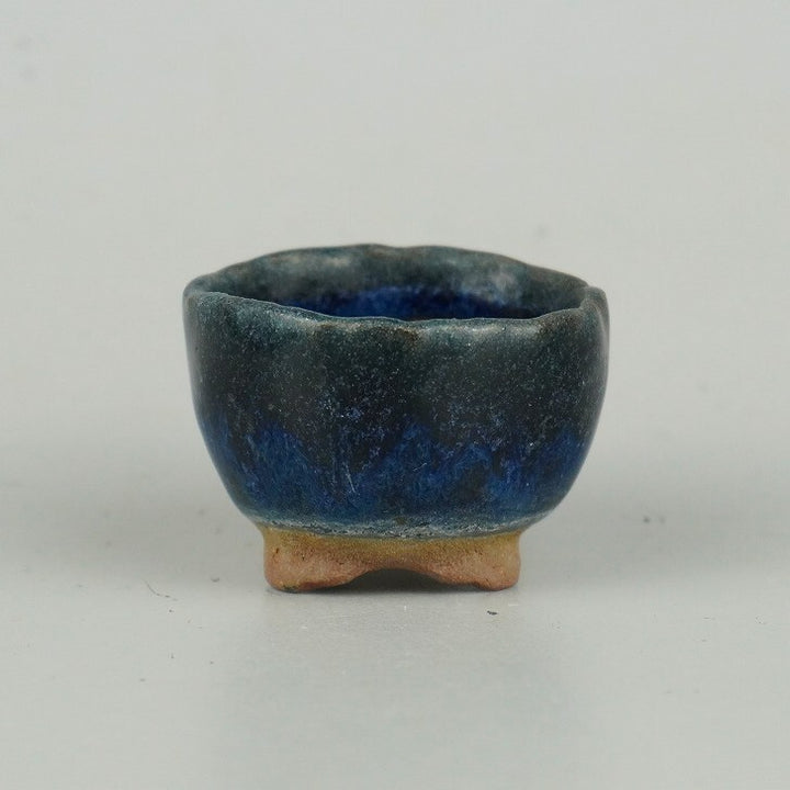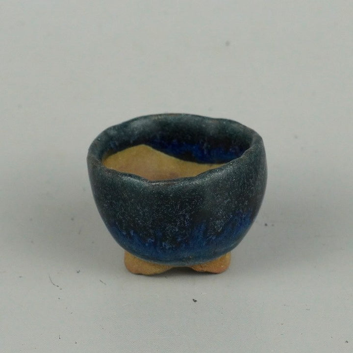 盆栽鉢 落款なし 豆鉢 長辺 約 4cm 丸鉢 釉薬 ミニ鉢 観賞用 現品 中古鉢 品名落款なし...