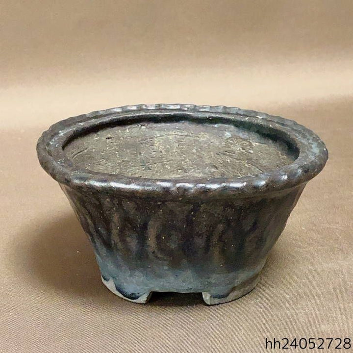 中古 盆栽鉢 裕正 小型 長辺 約11.7cm 丸鉢 釉薬 中古鉢 l1198405896