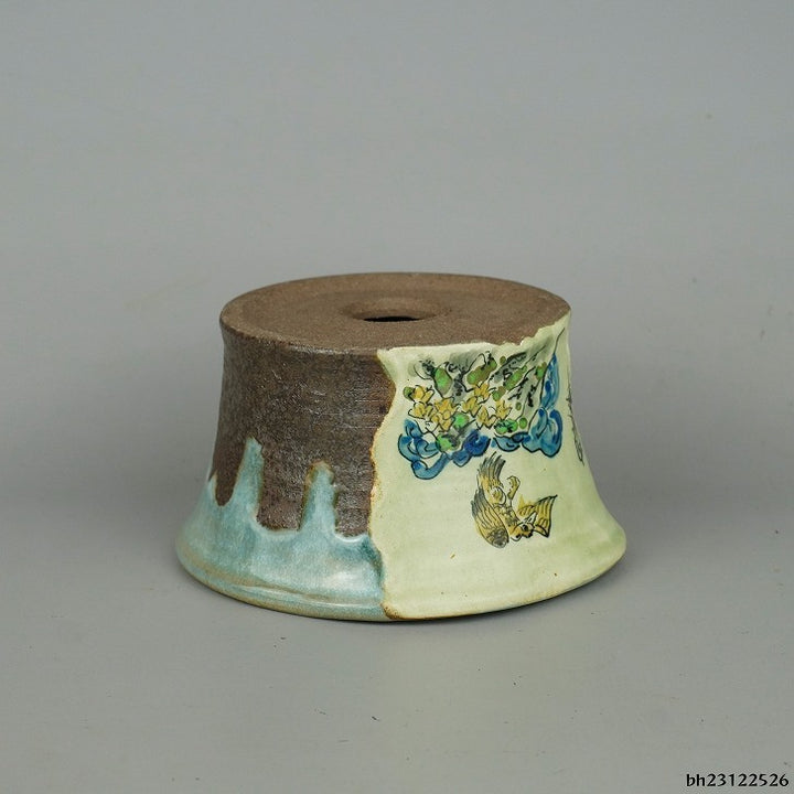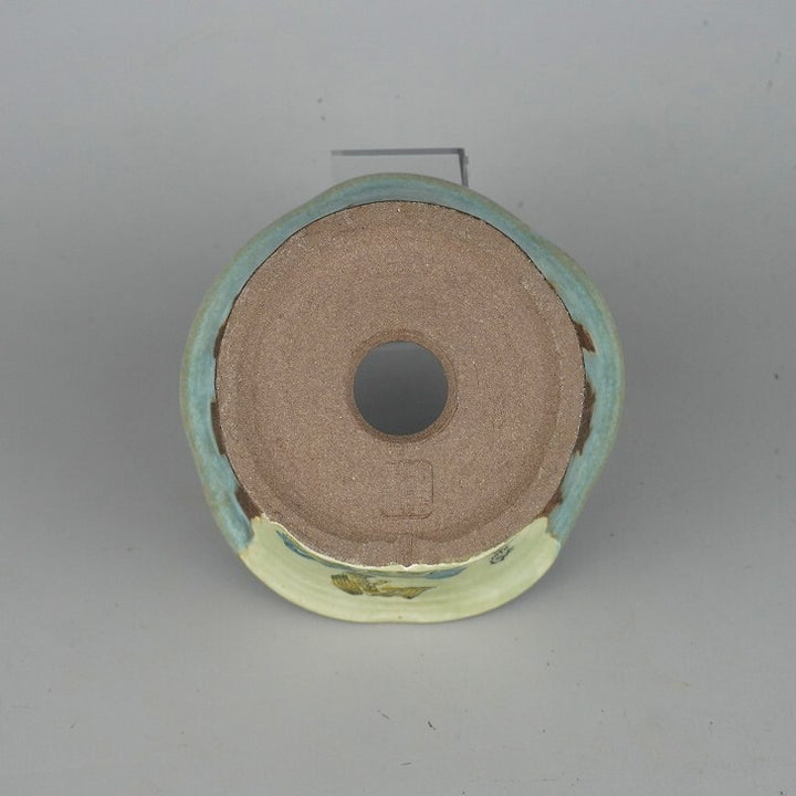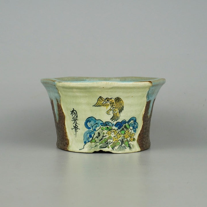 盆栽鉢 陶翠 小型 長辺 約12.5cm 丸鉢 色絵 鳥 現品 中古鉢 品名陶翠 陶翠筆...