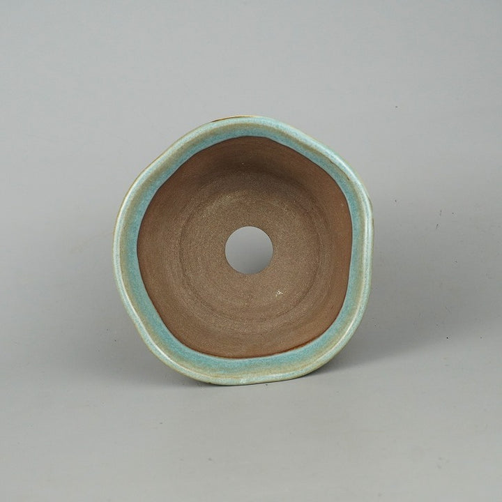 中古 盆栽鉢 陶翠 小型 長辺 約12.5cm 丸鉢 色絵 鳥 植物 山野草 中古鉢 p1198417125