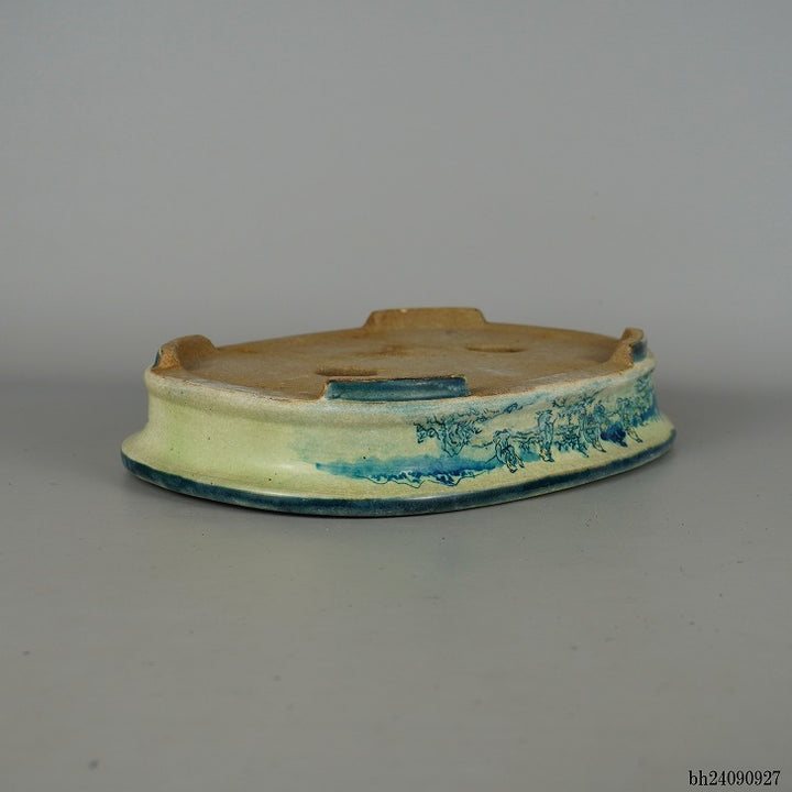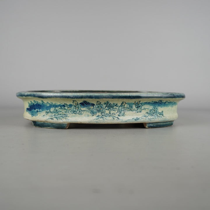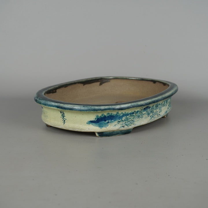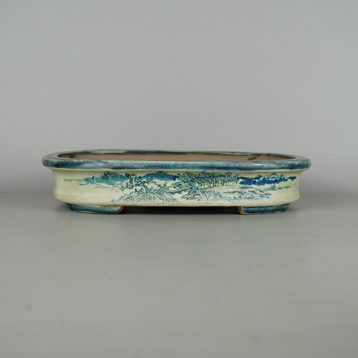 盆栽鉢 陶翠 陶翠筆 中型 長辺 約27.5cm 楕円鉢 染付 山水図 現品 中古鉢 品名陶翠 陶翠筆...