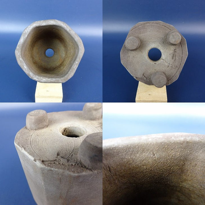 中古 盆栽鉢 青風 小鉢 高さ 約7cm 六角鉢 泥鉢 中古鉢 q1198418961
