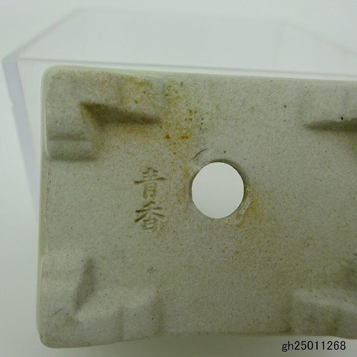 盆栽鉢 青香 小鉢 長辺 約 5.8cm 長方 鉢 縁付 貫入 釉薬 現品 中古鉢 品名青香...