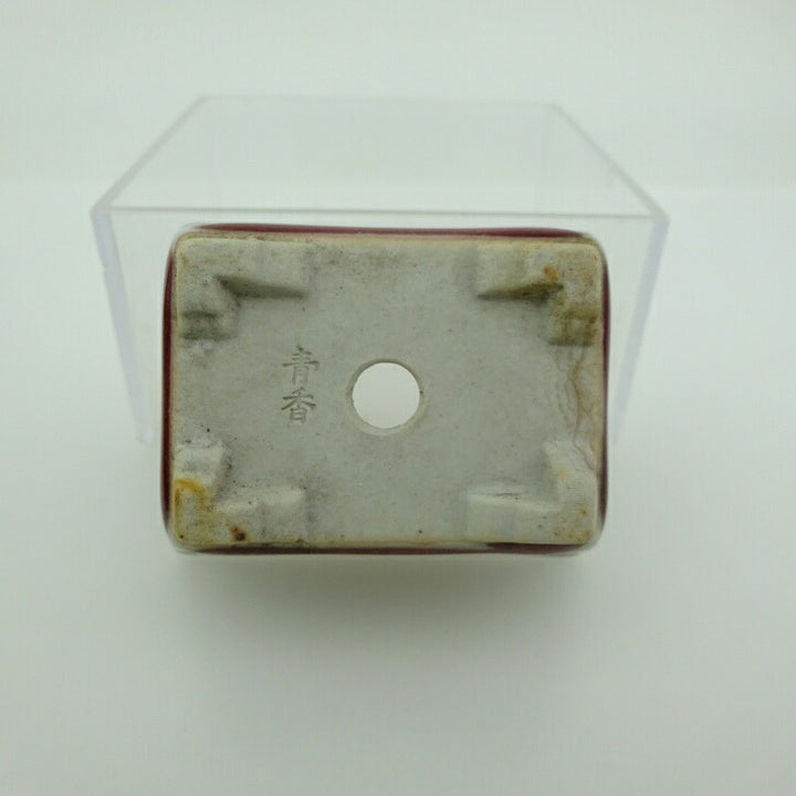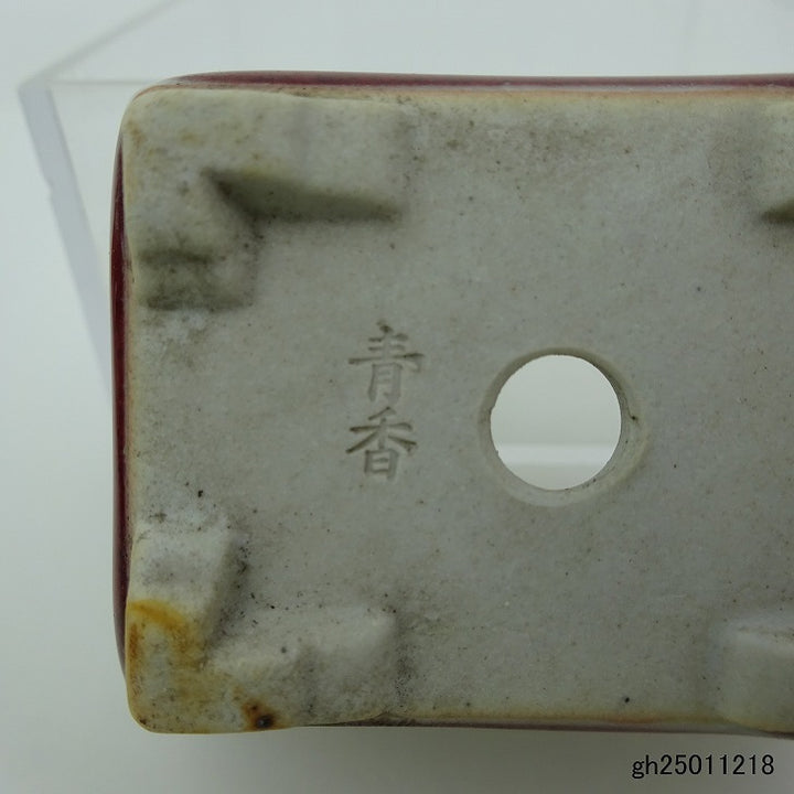 盆栽鉢 青香 小鉢 長辺 約 5.8cm 長方 鉢 縁付 釉薬 現品 中古鉢 品名青香...