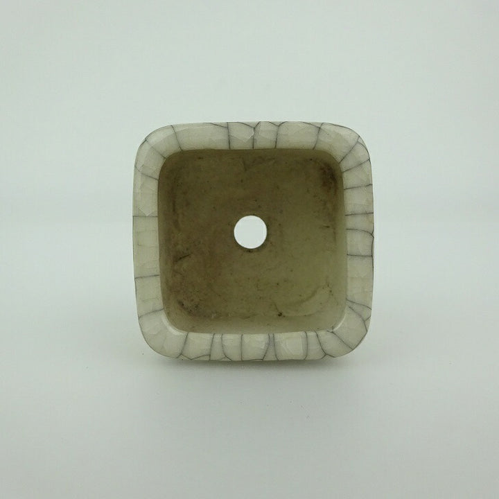 【中古】盆栽鉢 青香 豆鉢 長辺 約 4.5cm 正方 鉢 貫入 釉薬 現品 中古鉢 品名青香...