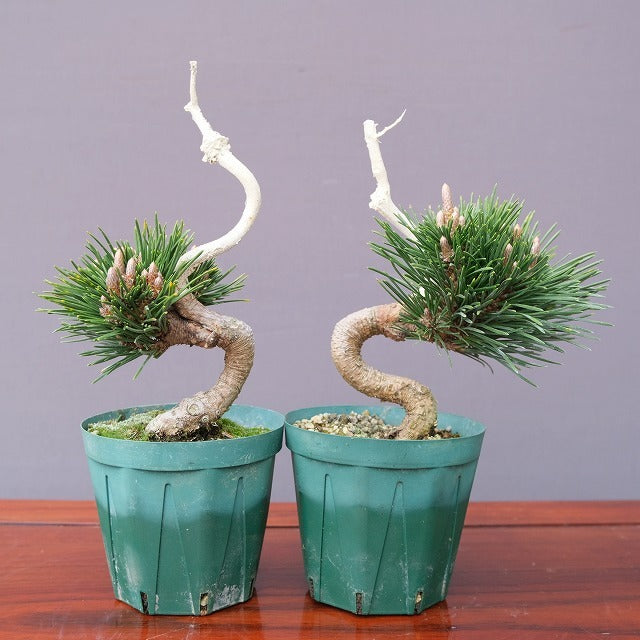 松盆裁生産日本一の高松から、盆栽職人が丹誠込めて作りあげた盆栽を、産地直送にてお届けします。 千寿丸2本セット 【 模様木 】 説 明千寿丸2本セットでの出品です。黒松系の品種で芽切りしなくても、枝が繊細に出来てくると葉の長さが1センチと更に短くなります。黒松より緑が濃く、短く太くしっかりしており、胴吹き旺盛で枝作りの早い樹です。この樹は幹を太らせ、低い樹高に抑えて作り込み、天ジンを効かせてあります。画像は見本であり、同等品になります。鉢はプラ鉢。...