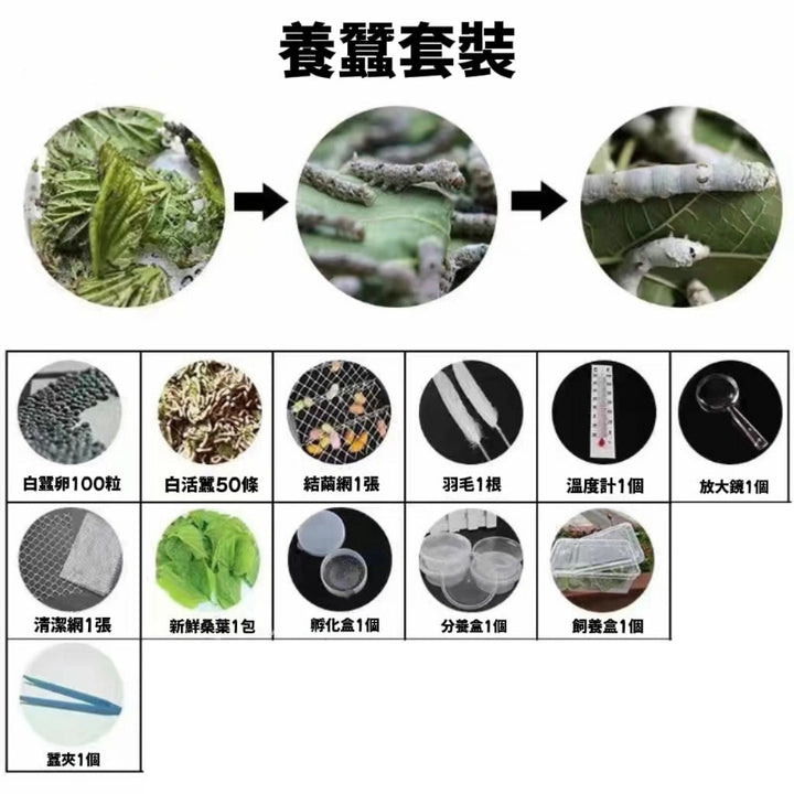 蠶寶寶 蠶蟲卵(學生養蠶套裝 活體蠶+基礎工具包)