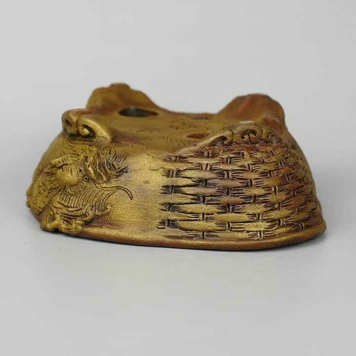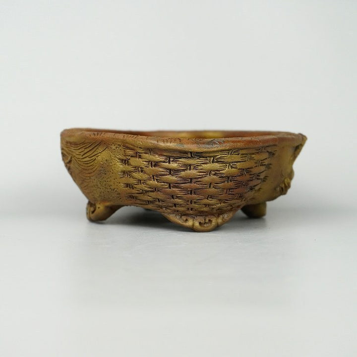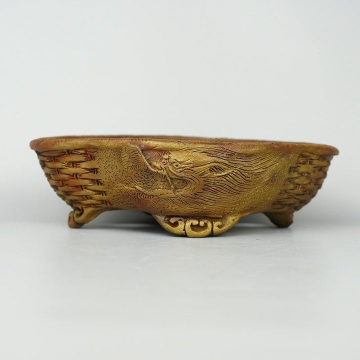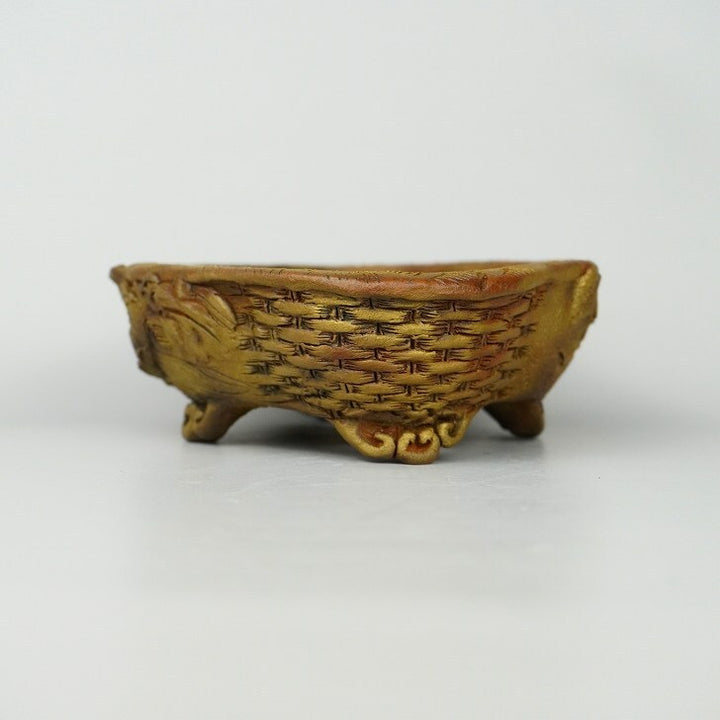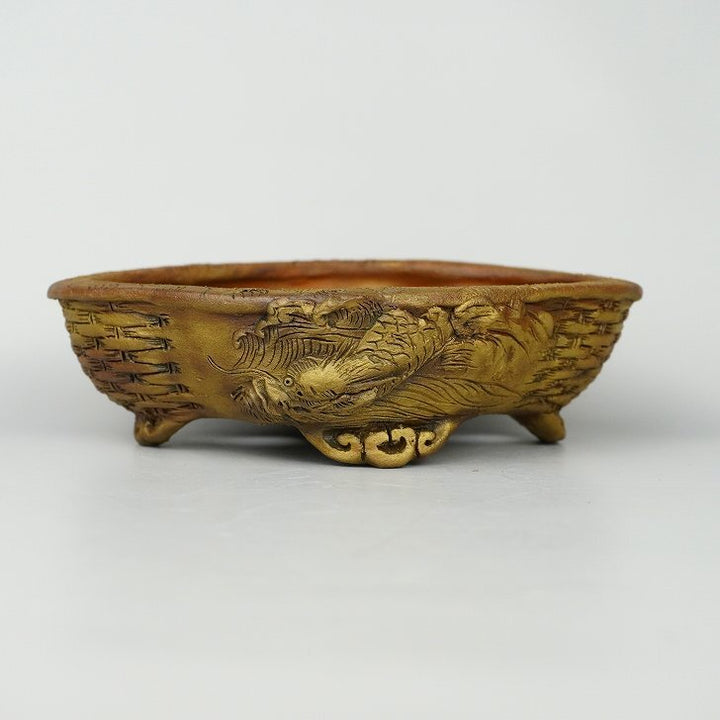 嵐山 谷嵐山 浮彫 龍図 木瓜鉢 籠目 観賞用 盆栽鉢 新品 o1198428608