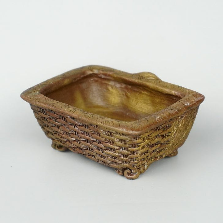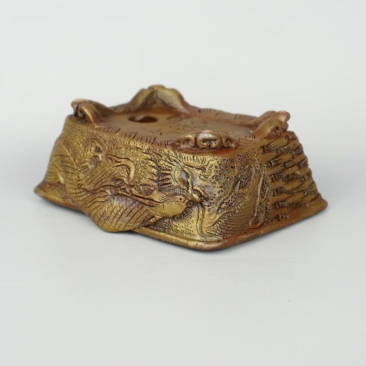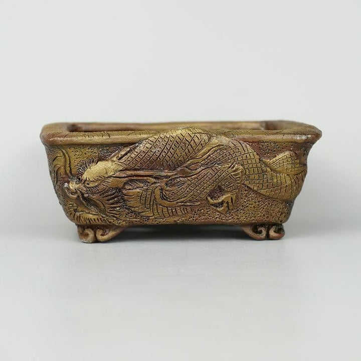 嵐山 谷嵐山 浮彫 龍図 長方鉢 籠目 観賞用 盆栽鉢 新品 p1198414187