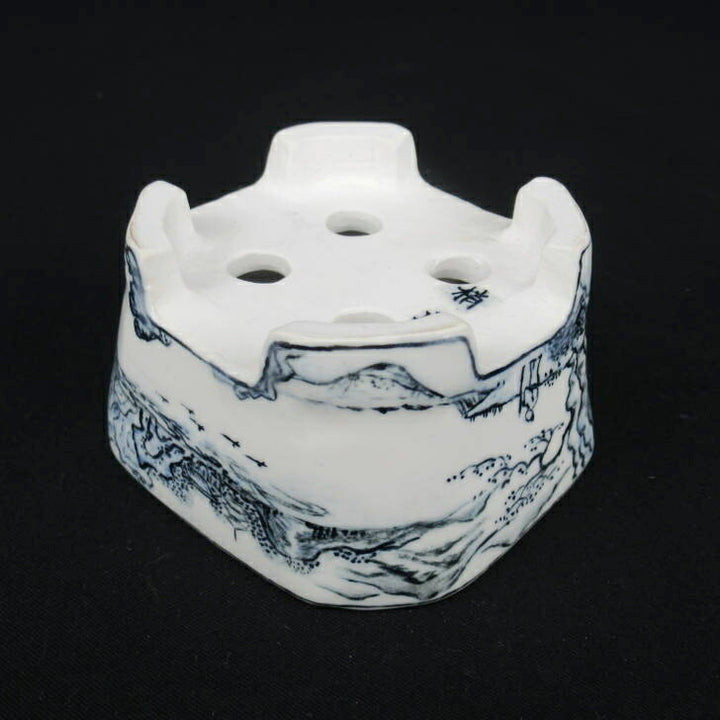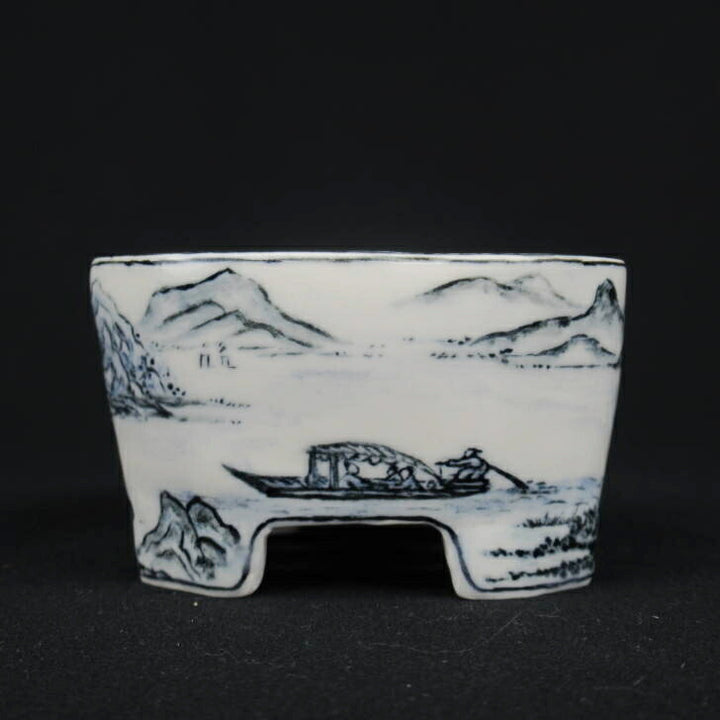 梢風 染付 山水画 隅切 長方鉢 盆栽鉢 新品 c1198404398