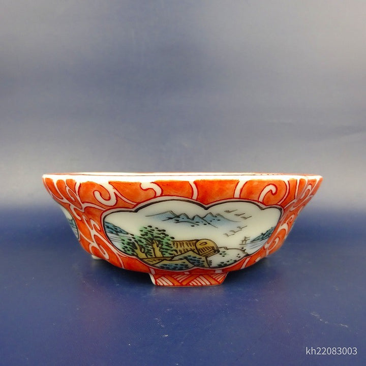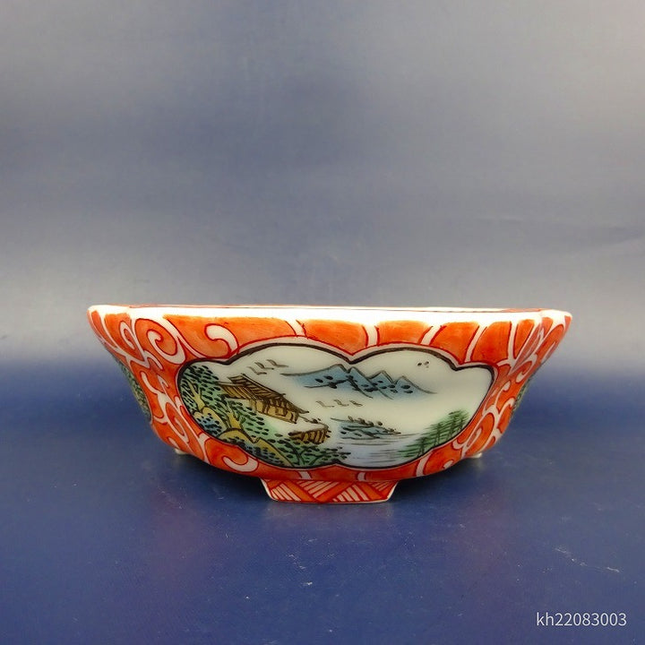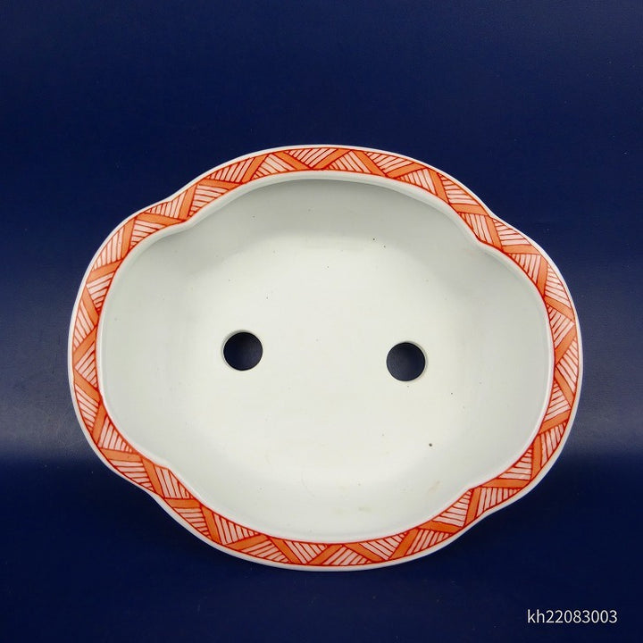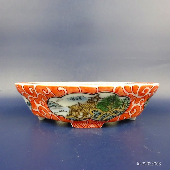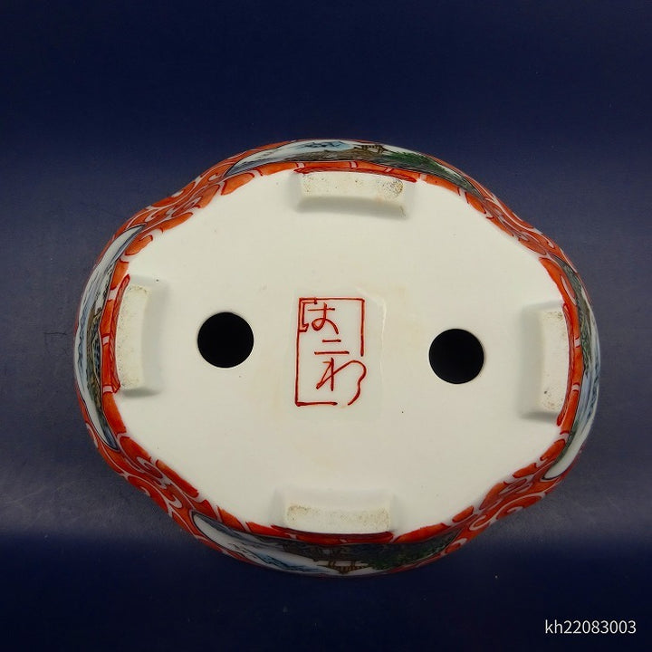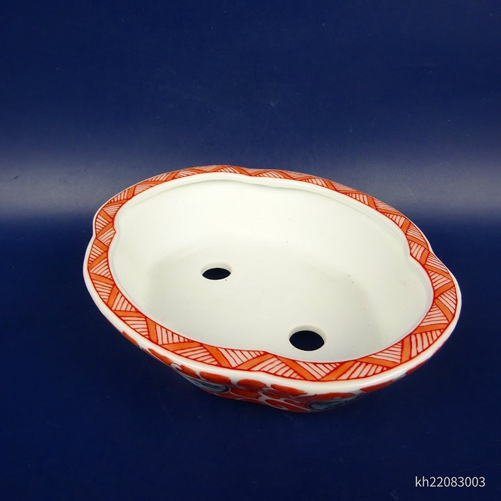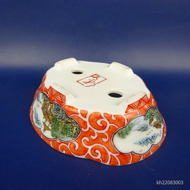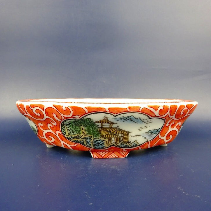 盆栽鉢 は二わ オリジナル鉢 小型 長辺 約15.2cm 木瓜鉢 色絵 風景画 山水図 観賞用 新品 t1198406593