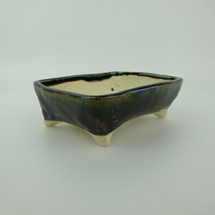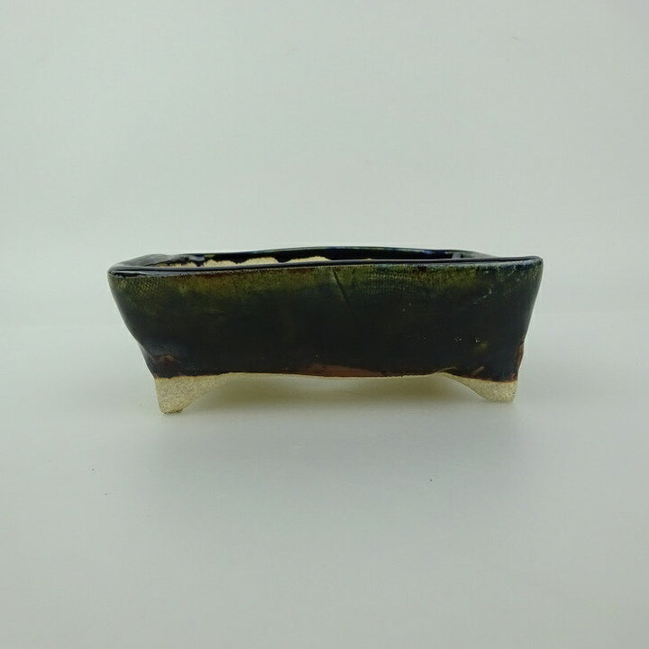 盆栽鉢 ゆうき祥石 小型 長辺 約 11.2cm 長方鉢 釉薬 観賞用 新品 p1198417722