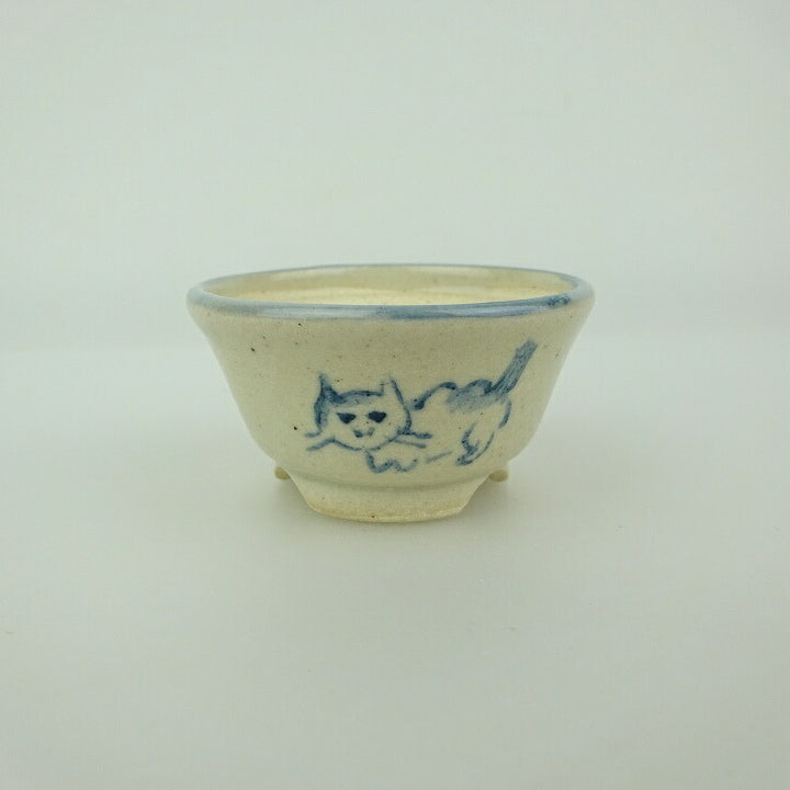 盆栽鉢 ゆうき祥石 小鉢 長辺 約 4.8cm 丸鉢 絵鉢 猫 ネコ ねこ 釉薬 観賞用 新品 1198408707