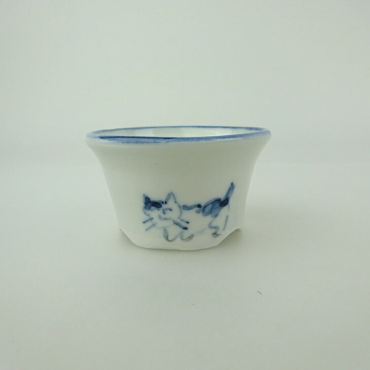 盆栽鉢 ゆうき祥石 小鉢 長辺 約 5.3cm 丸鉢 絵鉢 猫 ネコ ねこ 釉薬 鑑賞用 観賞用 新品 b1202251185
