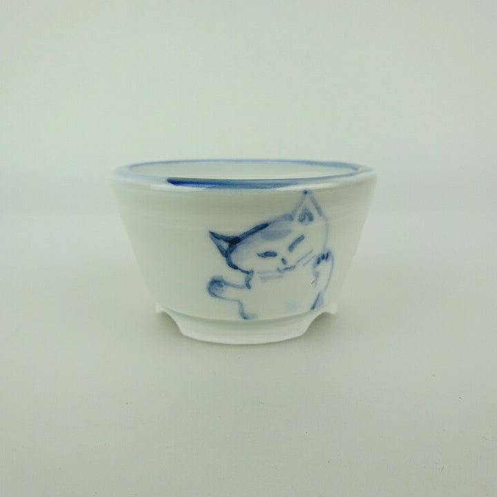 盆栽鉢 ゆうき祥石 小鉢 長辺 約 5.8cm 丸鉢 絵鉢 猫 ネコ ねこ 釉薬 観賞用 新品 f1198412064