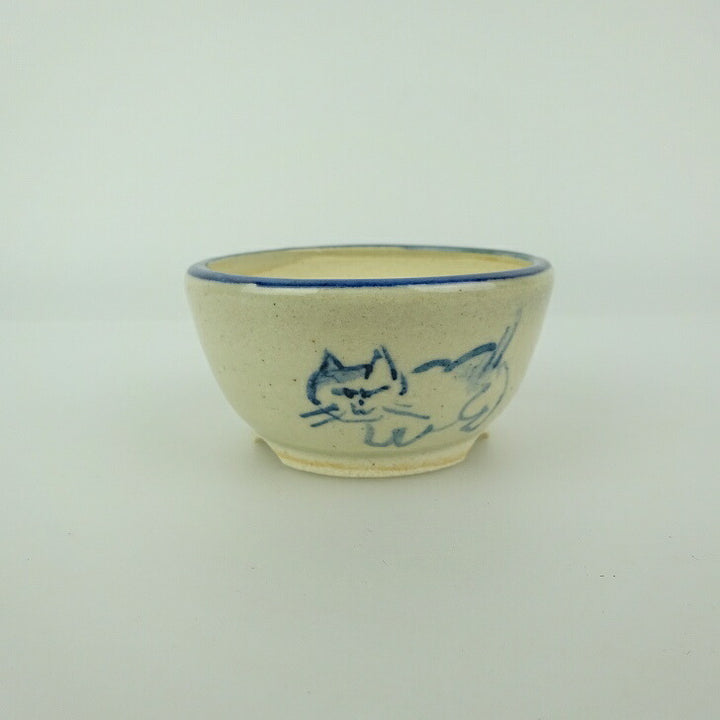 盆栽鉢 ゆうき祥石 小鉢 長辺 約 6.2cm 丸鉢 絵鉢 猫 ネコ ねこ 釉薬 観賞用 新品 u1198429462