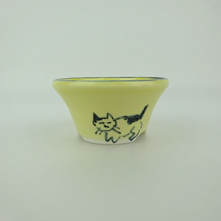 盆栽鉢 ゆうき祥石 小鉢 長辺 約 6.5cm 丸鉢 絵鉢 猫 ネコ ねこ 釉薬 観賞用 新品 p1198417071