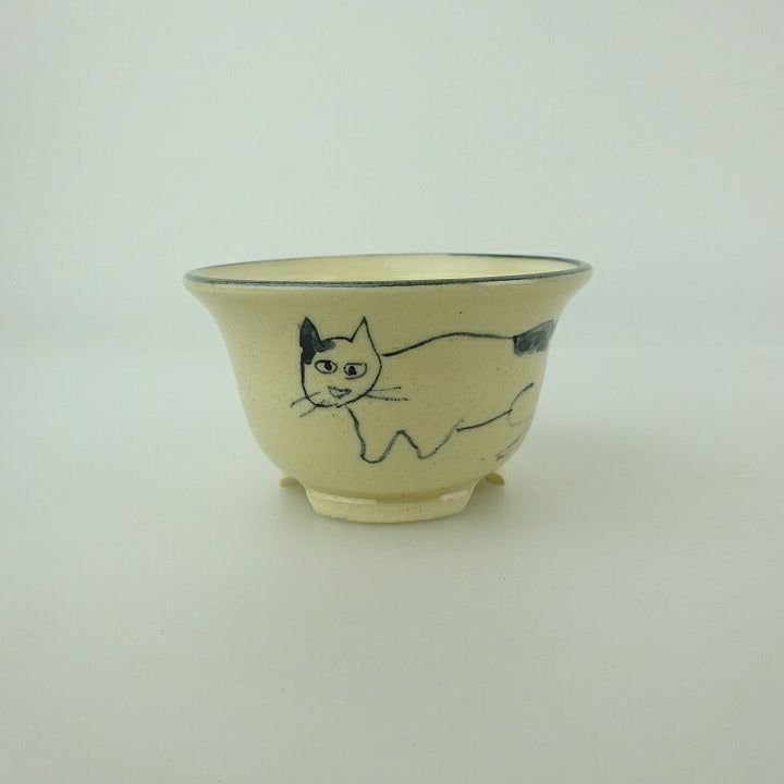 盆栽鉢 ゆうき祥石 小鉢 長辺 約 6.8cm 丸鉢 絵鉢 落款なし 猫 ネコ ねこ 足跡 肉球 釉薬 鑑賞用 観賞用 新品 n1202238447