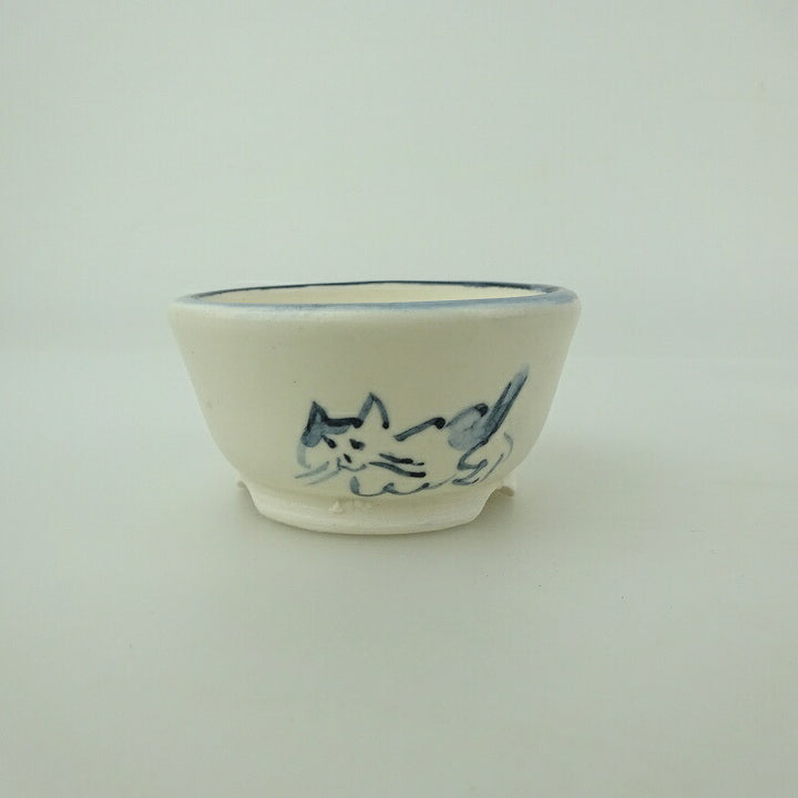 盆栽鉢 ゆうき祥石 小鉢 長辺 約 6cm 丸鉢 絵鉢 猫 ネコ ねこ 釉薬 鑑賞用 観賞用 新品 f1202244234