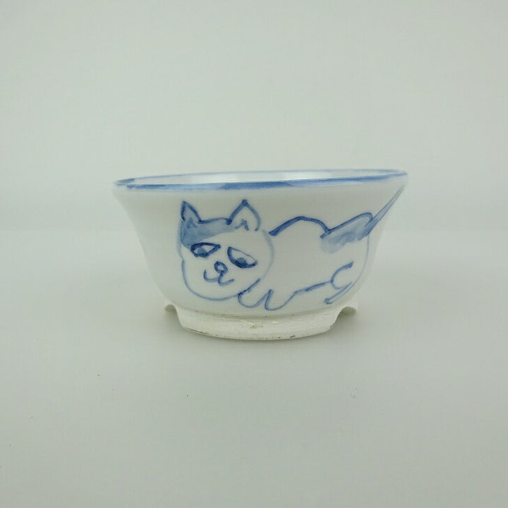 盆栽鉢 ゆうき祥石 小鉢 長辺 約 7.2cm 丸鉢 絵鉢 猫 ネコ ねこ 釉薬 観賞用 新品 u1198431056