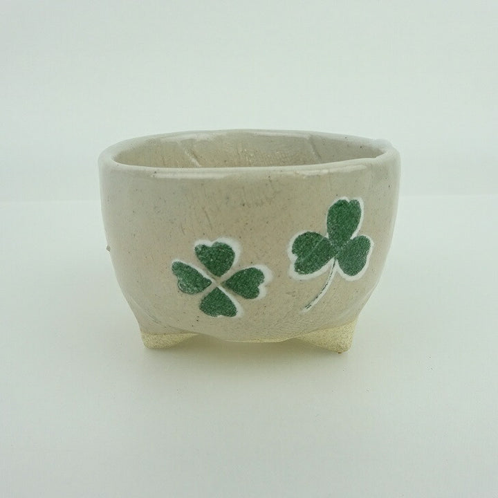 盆栽鉢 ゆうき祥石 小鉢 長辺 約7.2cm 丸鉢 プリント クローバー 四つ葉 釉薬 観賞用 新品 d1198427904