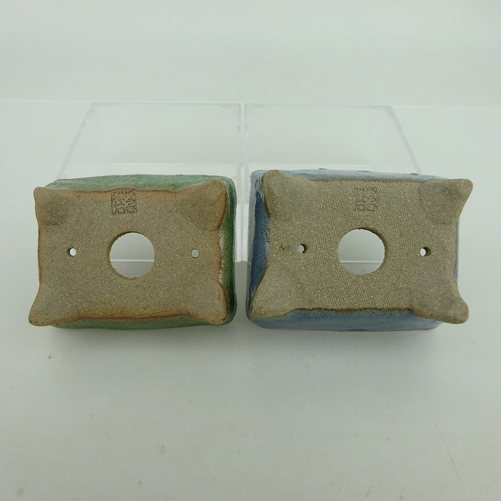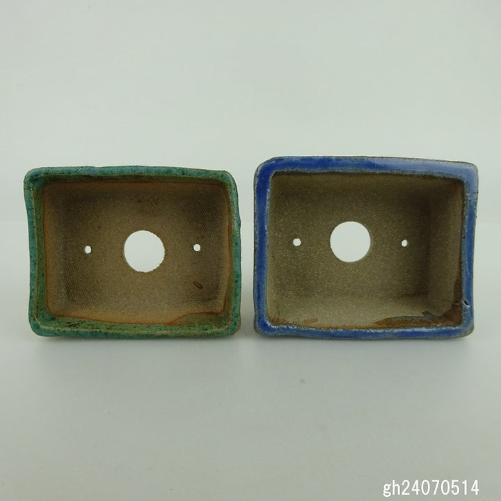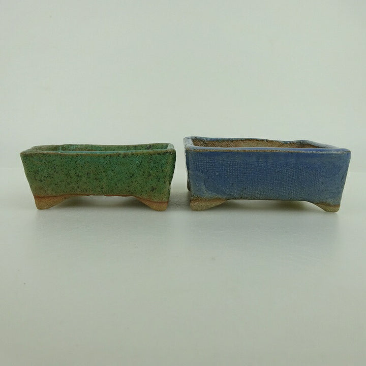 盆栽鉢 ゆうき祥石 2点セット 小鉢 長辺 約8cm 長方鉢 緑 水色 釉薬 新品 w1198407740
