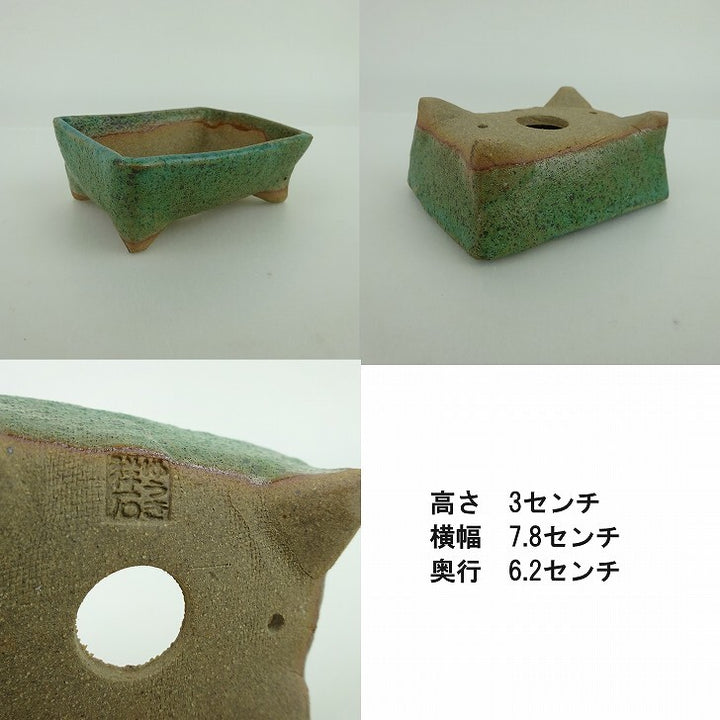 盆栽鉢 ゆうき祥石 2点セット 小鉢 長辺 約8cm 長方鉢 緑 水色 釉薬 現品 新品 商品ゆうき祥石 2点セット...
