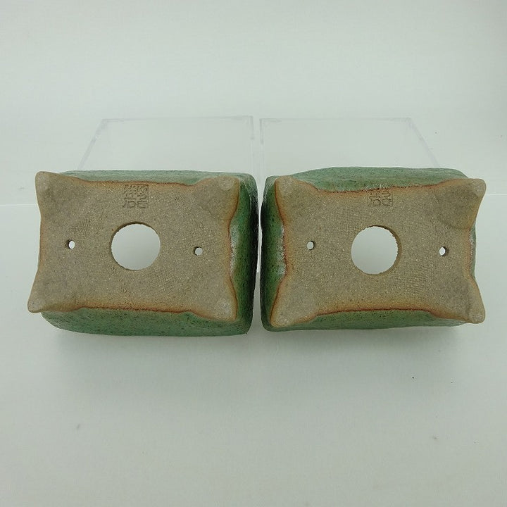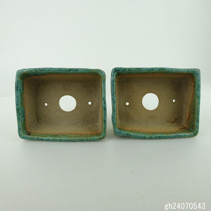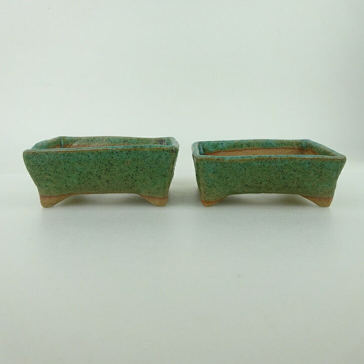 盆栽鉢 ゆうき祥石 2点セット 小鉢 長辺 約8cm 長方鉢 緑 釉薬 新品 g1198418882