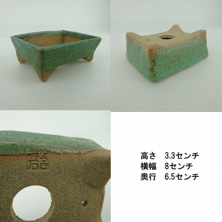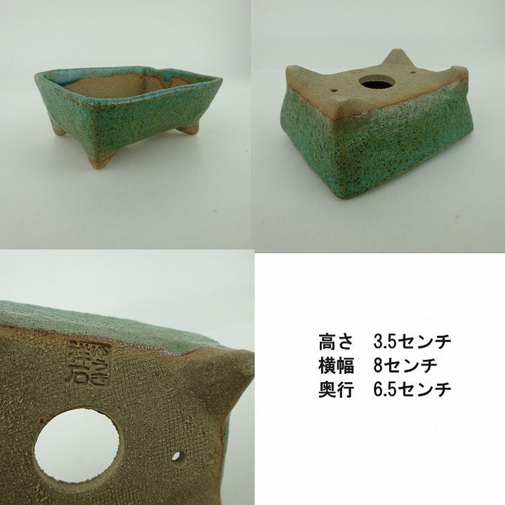 盆栽鉢 ゆうき祥石 2点セット 小鉢 長辺 約 8cm 長方鉢 緑 釉薬 現品 新品 品名ゆうき祥石 2点セット...
