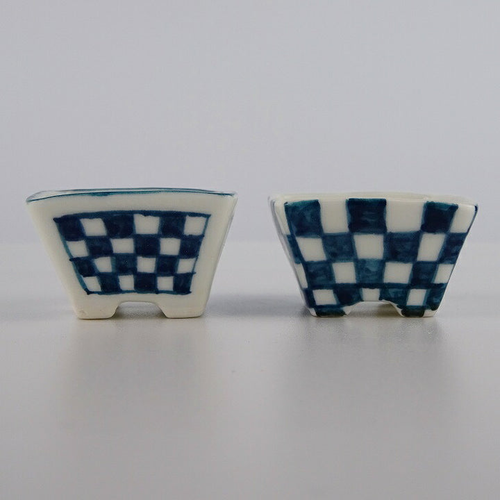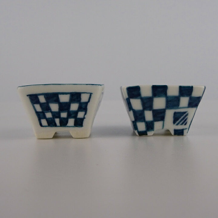 盆栽鉢 ゆうき祥石 2点セット 豆鉢 長辺 約4cm 正方鉢 格子柄 染付 現品 新品 商品ゆうき祥石 2点セット...
