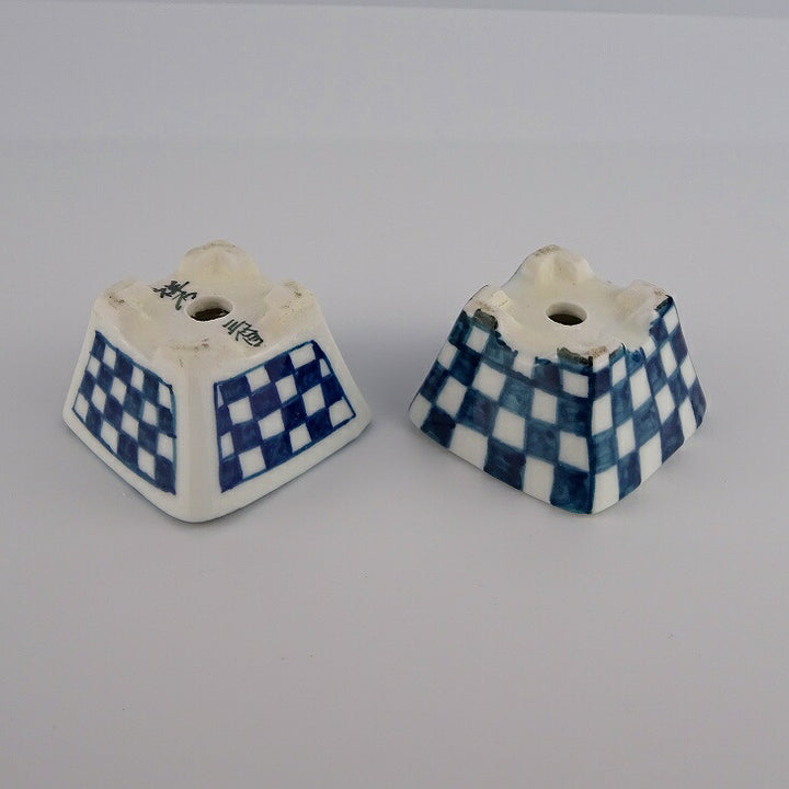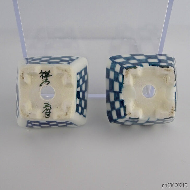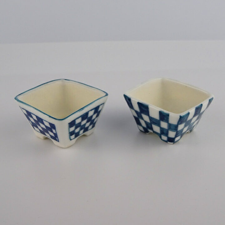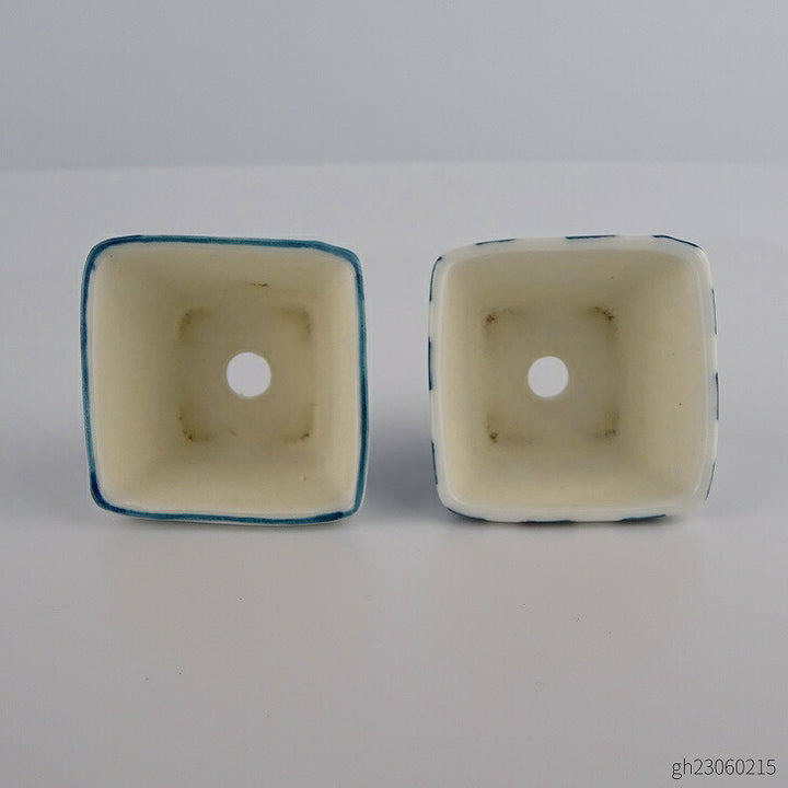 盆栽鉢 ゆうき祥石 2点セット 豆鉢 長辺 約4cm 正方鉢 染付 格子柄 観賞用 新品 d1198420085