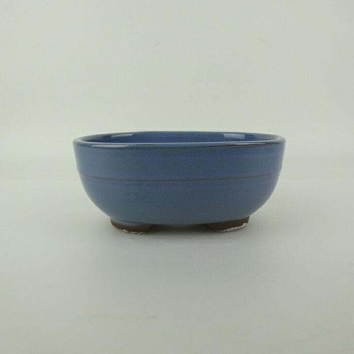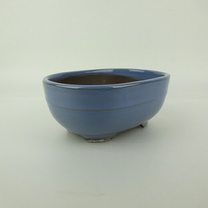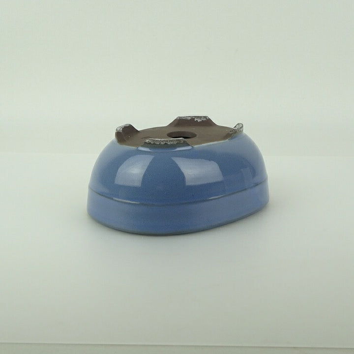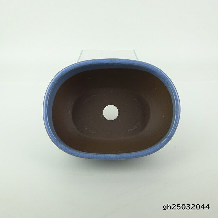盆栽鉢 万古焼 萬古 森三 小型 長辺 約13.8cm 楕円鉢 中帯 釉薬 新品 数量物 j1198410899