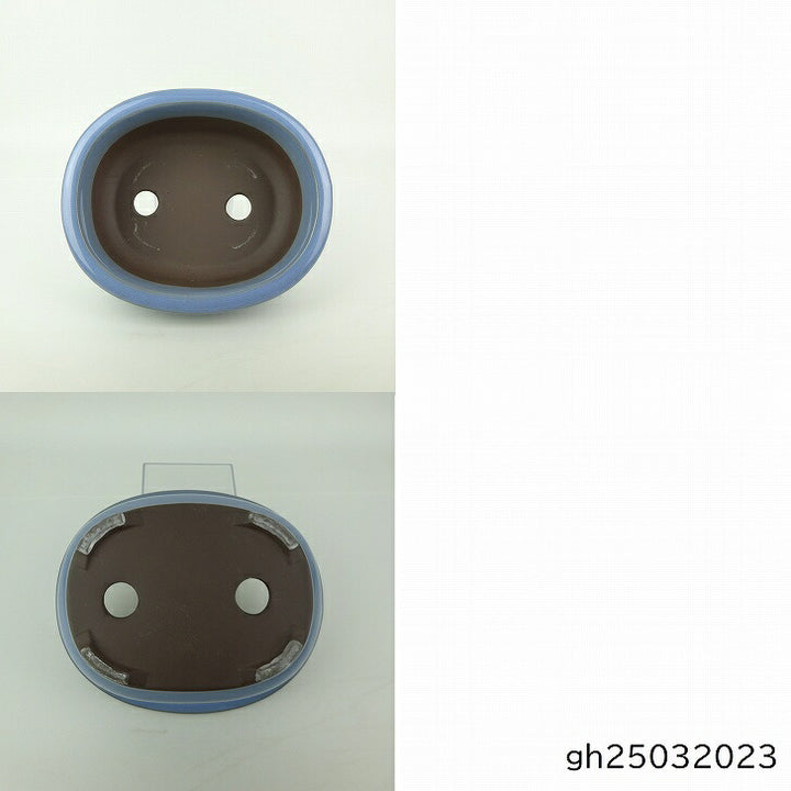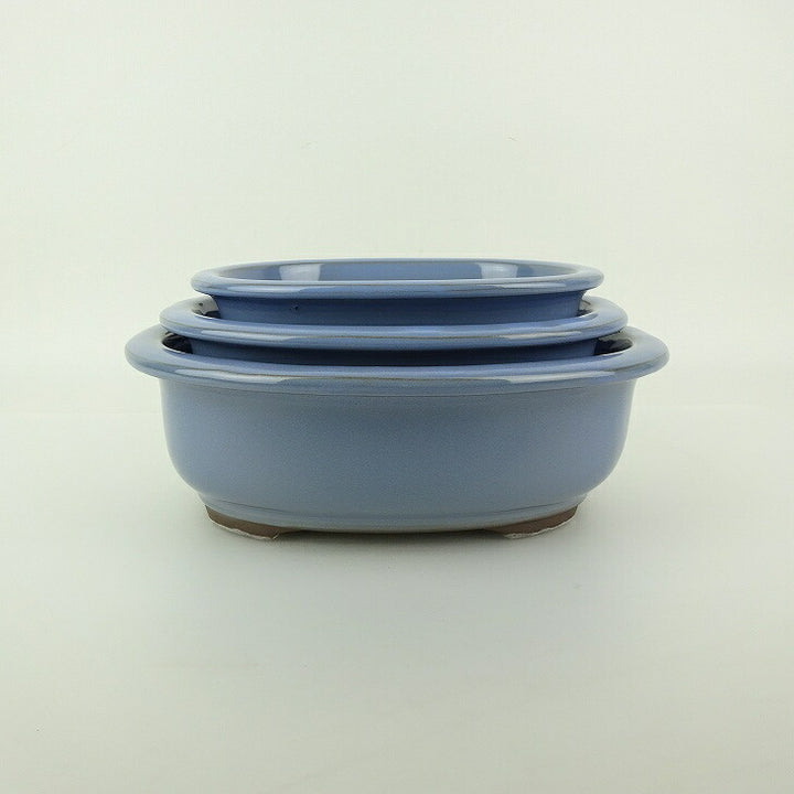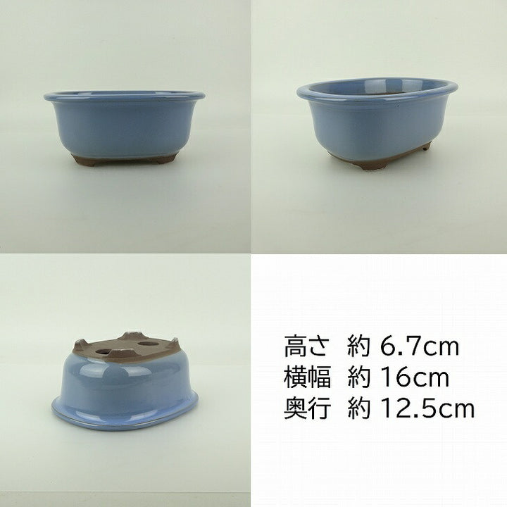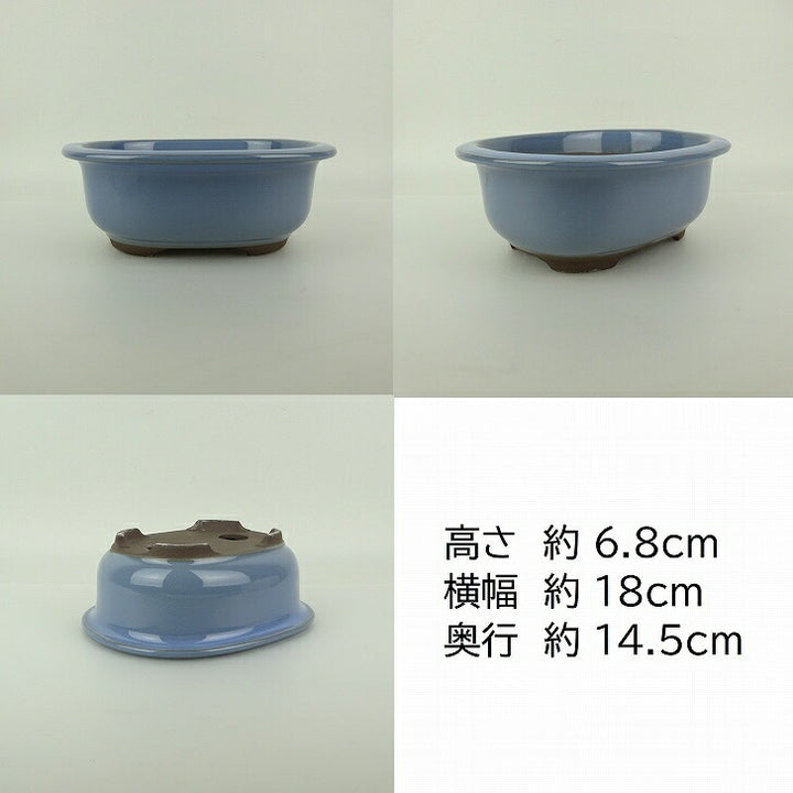 盆栽鉢 万古焼 萬古 3点セット 小型 中型 長辺 約21cm 楕円鉢 縁付 釉薬 新品 数量物 p1198419171