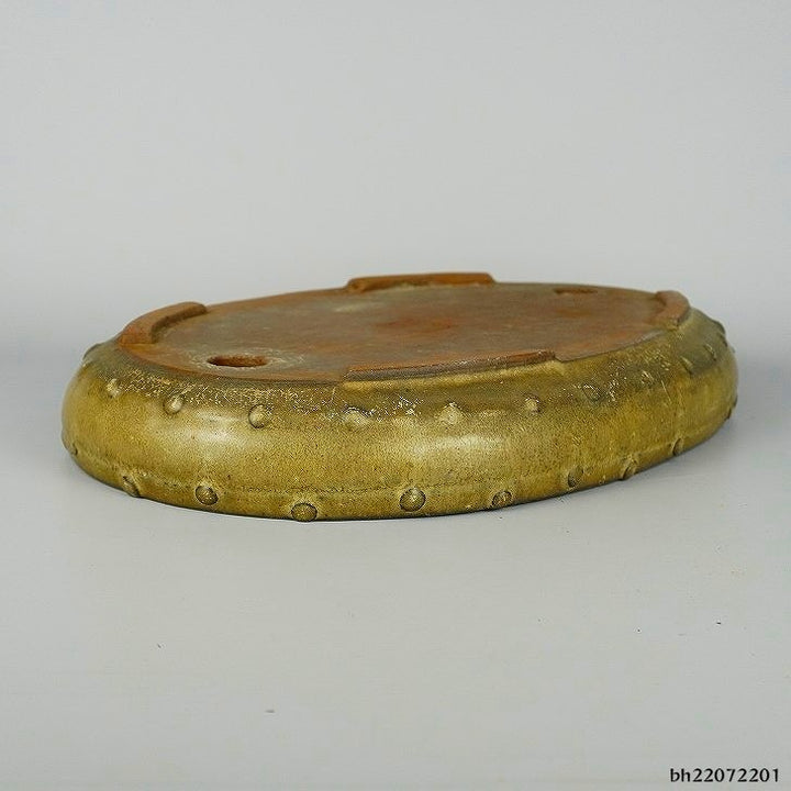 盆栽鉢 三州 一陽 中型 長辺 約34cm 楕円鉢 太鼓 鋲打 釉薬 中古鉢 f1198411718
