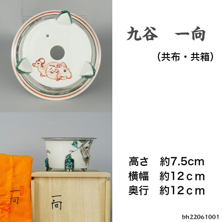 盆栽鉢 九谷 一向 小型 長辺 約 12cm 丸鉢 鬼面足 色絵 白猿図 共箱 共布 観賞用 現品 新品 品名九谷一向 サイズ高さ 約 7.5センチ 横幅 約 12センチ...