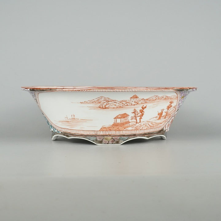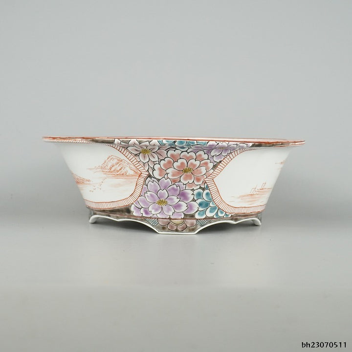 盆栽鉢 九谷 有朋 中型 長辺 約 24.3cm 木瓜鉢 赤絵 花詰 窓抜 山水図 共布 共箱 観賞用 現品 新品 商 品 名九谷 有朋(共布、共箱付き) サ イ ズ高さ 約7.2センチ...
