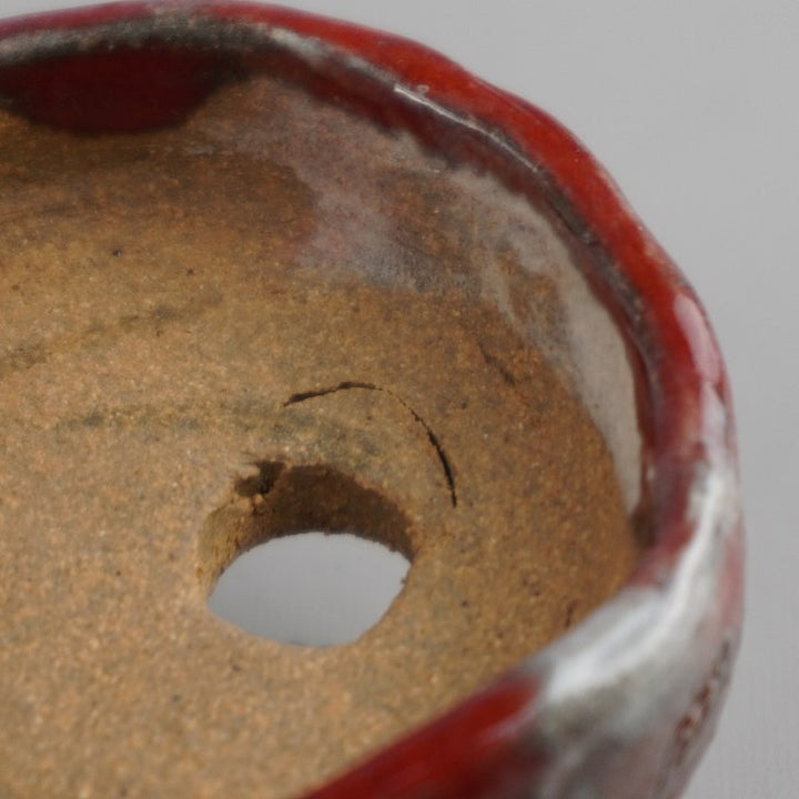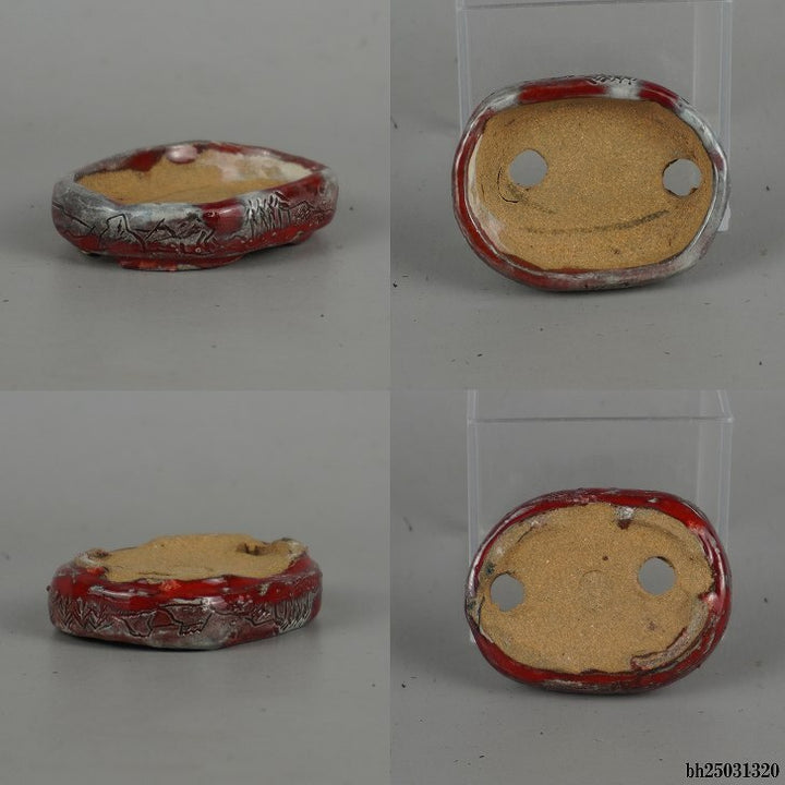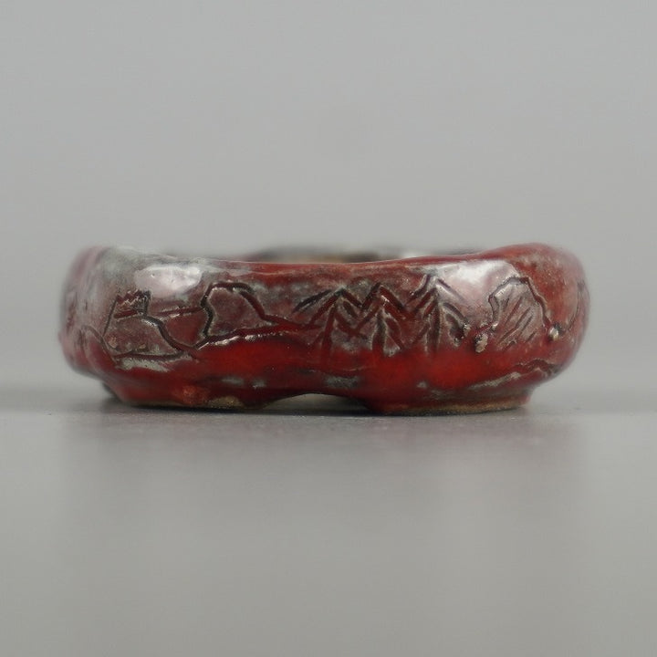 盆栽鉢 元蓉 小鉢 長辺 約 6.2cm 楕円鉢 彫入 山水図 釉薬 観賞用 p1198412740