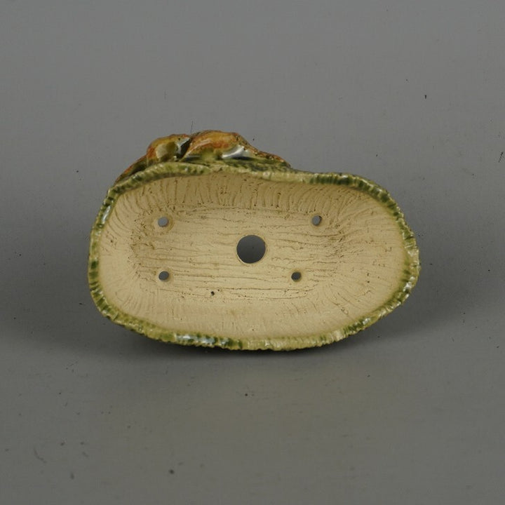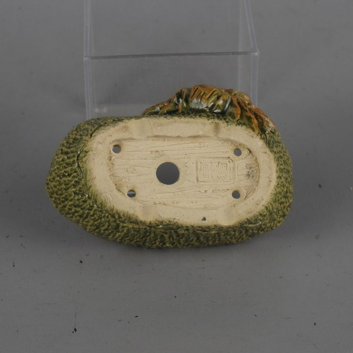 盆栽鉢 卓道 小鉢 長辺 約 8.8cm 変形 楕円鉢 蟹付 かに カニ 釉薬 観賞用 新品 v1198436436
